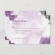 Preencha a sua papelaria de casamento com este Cartão RSVP Floral Puro Gótico Escuro, uma forma maravilhosamente humorada e elegante de reunir respostas aos convidados. Como parte da Suíte Casada Floral Púrpura Gótica Escura, esta carta espelha o estilo romântico e dramático do seu tema de casamento. Apresentando um fundo roxo rico, rosas roxos escuros, verde macio e todo o texto em coordenação de matizes roxos, é uma peça sofisticada que corresponde perfeitamente ao resto de sua suíte. O layout é limpo e fácil de ser seguido, com a maioria do texto em uma fonte moderna de bloco para maior clareza. Seus primeiros nomes são realçados em uma fonte de script graciosa, adicionando um toque pessoal e romântico. A tipografia roxa profunda gravatas tudo junto e ecoa os sotaques florais, garantindo que seu cartão RSVP se sinta coeso com o resto de seus convites e detalhes. Totalmente personalizável, esta placa RSVP permite que você adapte as opções de resposta ao seu evento — seja necessário que os convidados selecionem preferências de refeições, respondam a eventos adicionais ou incluam uma nota personalizada. Há também espaço para incluir informações do registro ou um link para o seu site de casamento, fazer-o tanto na moda quanto prático. Compare-o perfeitamente com outros itens do Suite Floral de Casamento Púrpura Gótica Escura, incluindo convites, Salvar as Datas, menus, programas e muito mais. Esta placa RSVP não só ajuda você a se organizar, como também melhora a estética geral do casamento com seu charme escuro, romântico e moderno.