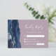 A borda esquerda deste elegante cartão de cercado RSVP de casamento moderno apresenta um marinho azul de aquarela agate borda com falso brilho prateado. O título "Resposta gentil" aparece no script de escrita manual, com texto personalizável abaixo na fonte de impressão branca num fundo roxo mauve. O verso apresenta um design azul marinho e agate prateado correspondentes.