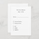 Colete respostas de convidado com facilidade usando este cartão RSVP minimalista, projetado para combinar com o seu pacote de papelaria de casamento de cheio. O layout limpo e moderno garante clareza e ao mesmo tempo reflete o estilo refinado de sua celebração. Personalize com suas opções de resposta preferidas, opções de refeições e endereço de retorno para fazer o planejamento sem estresse para você e seus convidados. Compacto em tamanho, mas grande em impacto, esta placa RSVP combina perfeitamente com nossos convites, Cartões salve a data, placas de detalhes correspondentes e notas de agradecimento. Disponível em todos os tipos de papel — os casais geralmente escolhem Luxe Linen para obter textura adicionada, Pearl Shimmer para um acabamento radiante ou Ultra-espesso para um toque elevado. Os envelopes correspondentes são incluídos, fazer simples para os convidados responderem rapidamente. Faça seu processo de RSVP sem esforço e na moda com um cartão minimalista que complementa a elegância do dia do seu casamento.