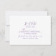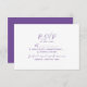Reunir as respostas dos seus convidados com elegância usando este cartão RSVP de casamento roxo minimalista. Apresentando tipografia moderna e limpa, sotaques violetas suaves e um layout chic para preferências de refeições, este cartão complementa perfeitamente uma suite de casamento contemporânea e na moda. Simples, bonito e fácil de personalizar para seu dia especial.