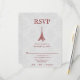 Envie aos convidados uma simples e elegante placa RSVP de Casamento tema damasco da Torre Vermelha Eiffel com seu convite. O design de placa RSVP apresenta a Torre Eiffel contra um delicado fundo de local damask. Personalizar com as opções de data e menu de resposta. Material adicional disponível com esta design também.