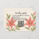 Projetada para facilidade moderna e simplicidade graciosa, esta placa RSVP apresenta um espaço dedicado para um código QR que convida os convidados a responder sem problemas. O verso mostra um monograma e data de casamento em uma fonte refinada de script — não embelezada, mas cheio de sentimento.