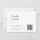 Esta elegante placa RSVP branca apresenta um design de caligrafia sofisticado e moderno com "Resposta Rápida" no roteiro azul do marinho na moda. Um código de QR conveniente permite que os convidados possam facilmente RSVP e selecionar suas preferências de refeição on-line. Personalizado com os nomes dos casais e a data do casamento, este refinado cartão de resposta de convite é perfeito para temas de casamento formais e eternos. Uma maneira moderna e na moda de recolher respostas de convidados enquanto adiciona um toque de elegância à sua papelaria de casamento.