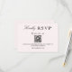 Uma placa RSVP moderna e simples, com um código QR personalizável. Esta é uma maneira fácil e conveniente de seus convidados responderem ao seu casamento ou evento especial.