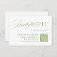 Esta refinada placa RSVP apresenta uma tipografia sage verde serif com um sotaque de script fluente e um código QR para os convidados responderem on-line. Ideal para casamentos modernos que combinam elegância do eterno com conveniência digital. Inclui espaço para o seu site de casamento e um prazo para respostas. Perfeito para casamentos formais de jardim, comemorações de verão ou eventos tradicionais com um toque moderno. Totalmente editável. Parte da Coleção Casada "Iris" — clique no link da coleção nesta página para procurar peças de coordenação como convites, menus, cartazes e muito mais.