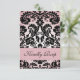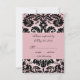 Cartão RSVP de Damasco Floral Rosa e Preto para Convites de Casamento Quadrado. Personalize com suas informações de RSVP.