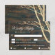 Placa RSVP de Escolha da Árvore de Madeira Escura Rústica. A design tem uma textura de fundo rústica de madeira escura e uma árvore com galhos. O design também apresenta pequenos speck brancos ou flocos de neve. Para obter mais itens correspondentes, clique no link de coleção abaixo do cartão.