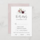 Este cartão RSVP de escolha de romance floral é perfeito para um casamento elegante. A moderna design do bico rústico apresenta flores românticas a aquarela em tons macios de burgundy, mauve, rosa-pincel e branco-creme com folhas verdes. Este cartão de resposta do casamento convenientemente pergunta aos hóspedes qual refeição eles gostariam na sua recepção.