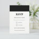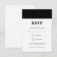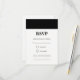 Uma simples placa RSVP de distribuição preta pode ser totalmente personalizada para atender às suas necessidades. © Gorjo Designs. Impresso por Zazzle. // Procurando itens correspondentes? Outros artigos de papelaria do conjunto disponíveis aqui: https://www.zazzle.com/collections/black_and_white_striped_wedding-119550615860932414 // Precisa de ajuda para personalizar o seu design? Tem outras ideias? Sinta-se livre para entrar em contato comigo em: zoe@gorjodesigns.com