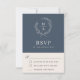 Uma escolha saborosa e clássica nos cartões de resposta do casamento, esta design transmite uma elegância simples no seu layout de texto e estilo clássico. Uma simples coroa aberta de folhas esboçadas envolve o monograma inicial da noiva e do noivo. O elegante e simples modelo de texto está pronto para personalizar com suas iniciais e data de RSVP necessária. Este cartão de resposta é uma escolha versátil para casamentos em qualquer estação do ano e para qualquer local de casamento, seja uma solene cerimônia religiosa ou um caso de tipo secular em um salão de banquete, adega, museu, restaurante, clube privado ou um casamento rústico fora da natureza. Ele está disponível em diversas cores populares (mostradas aqui no azul e na náutica do marinho), assim como em vários tipos de papel e pesos diferentes.