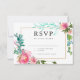 Cartão de RSVP de Peônia em Aquarela Floral Rosa