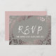 Este cartão de RSVP de rosa e cinza elegante é perfeito para um casamento clássico. O design apresenta uma impressionante armação rosa-rosa-rosada num fundo de cinza escuro e é emparelhado com uma fonte encantadora e cursiva. Crie sua lista de convidados de casamento e sua lista de músicas de dança de uma só vez! Este cartão de resposta do casamento convenientemente pergunta aos hóspedes se eles serão capazes de ir ao seu casamento, e também que música os fará dançar. Nota: Este design não apresenta folha de ouro rosa real. É um gráfico de alta qualidade feito para se parecer com ouro rosa brilhante.