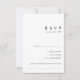 Este pedido de música Moderno Minimalista RSVP é perfeito para o seu casamento clássico do Boho. Seu design simples, único e abstrato, acompanhado de um roteiro mínimo contemporâneo e de uma paleta de cores brancas e pretas dá a este produto uma sensação de luxo formal elegante enquanto permanece simplista, boêmica. Mantenha-o como está ou escolha personalizá-lo com trabalho de arte ou gráficos de sua escolha. Você também pode procurar outros produtos dentro desta coleção para juntar todo o seu casamento!