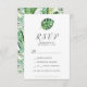 Este pedido de música de palma tropical silvestre RSVP é perfeito para um casamento de praia ou destino. A design apresenta um conjunto exótico de folhas de palmeiras de banana-d'água verde, samambaias, folhagem, plantas botânicas e verde para uma sensação tropical de verão. Crie sua lista de convidados de casamento e sua lista de músicas de dança de uma só vez! Este cartão de resposta do casamento convenientemente pergunta aos hóspedes se eles serão capazes de ir ao seu casamento, e também que música os fará dançar.