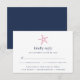 A placa RSVP do estilo litorâneo simples e elegante apresenta a data de resposta desejada e o texto de aceitação/declínio personalizado em azul marinho, seguido de uma ilustração de estrela-estrela da safra do solteiro em rosa vibrante. Convide os hóspedes a indicar a sua preferência completa ao longo da base e adicione as suas opções de refeições personalizadas.