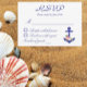 Âncora náutica azul concebida com os florais ranunculus, cor-de-rosa e branco, com eucalipto verde para um evento de Verão