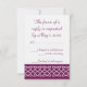 Esta elegante placa RSVP apresenta um fundo de vinho profundo e um grande coração de Weave Celta em branco na frente. Uma borda de vinho ao longo da borda inferior da carta com uma tecelagem branca, feita de corações estilizados, decora a parte de trás com algum texto de amostra no lugar acima que pode ser personalizado para ajustado de suas necessidades. Certifique-se de verificar os outros produtos do grupo Celtic Weave Hearts in Wine para criar uma busca verdadeiramente coordenada pelo seu evento.