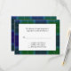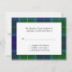 Cartões RSVP de resposta à xadrez de Wallace Tartan. Uma área de texto branco fica no meio do adorável padrão de xadrez azul e verde, com texto preto que é totalmente personalizável para atender às suas necessidades.