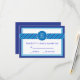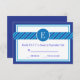 Esta elegante e moderna placa RSVP é ideal para celebrar um Bar Mitzvah com estilo e classe. Ele apresenta uma borda em vários tons de cor azul, uma borda de faixas na placa e um círculo com o nome inicial. Design clássico que é a moda e a captação de olhos. Adicione seu próprio texto e detalhes do evento.