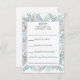 Elevem o seu casamento da Maravilha de inverno com o nosso encantador cartão RSVP de Casamento de Snowfall Ferns. Esta placa elegantemente projetada apresenta uma mistura de cor d'água de azul de nevasca, jato e matizes de rosa antigos, aninhados dentro de um quadro clássico. O cartão proporciona um espaço amplo para os seus convidados responderem ao seu convite, incluindo uma seção conveniente para anotar quaisquer restrições alimentares
