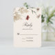 As flores de aquarelas e as folhas e gramíneas neutras dão uma vibração boho a este cartão de resposta de casamento. As cores de fundo são facilmente alteradas para se adequarem à sua estação. trabalho de arte/gráficos pela Julia Dreams Co.