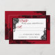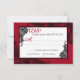Lace preto elegante sobre fundo vermelho com placa RSVP de contraste branco.