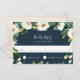Projetado para coordenar com a nossa coleção de casamento Alabastro, este novo cartão RSVP botânico verde e azul-marinho apresenta um spray de verde-aquarela e florais brancos que ultrapassam a data de resposta desejada e aceita e declina a redação.