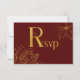 Bonita design de outono de florais de efeito de brilho dourado e texto 'Rsvp' sobre fundo burgundy. O estilo, o tamanho e a cor do texto na parte traseira da placa podem ser personalizados. NOTA: o script de efeito Dourado na frente do design é uma imagem e não pode ser editado. Muito mais designs e artigos de papelaria complementares em nossa loja