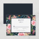 Elementos: marinhos, flores cor-de-rosa e escamosas com acentos verdes e laranja. Fontes de serif clássicas com acentos de script elaborados. Cores: azul marinho, azul empoeirado, azul real, rosa, pincel, verde, laranja, amarelo, branco. Temas: moderno, tradicional, vintage, clássico, jardim, botânico, inverno, escuro, outono. Coleção: Marinho Romântico Blue Blush Cor-de-rosa Floral Tipo de Produto da Coleção de Casamentos Florais: RSVP
