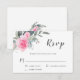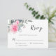Uma bela placa RSVP com um buquê elegante de rosas.