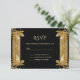Placa RSVP Floral de Ornamentado Negro Dourada
