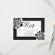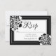 Belo design floral preto e branco com uma simples estrutura. Este é um convite elegante, de classe, que vai se adequar a todos os estilos de casamento e celebração, do formal ao moderno. Os convites e as placas estão disponíveis em uma seleção de opções de forma (bordas arredondadas, redimensionadas etc.) e em uma seleção de texturas de papel. Os estilos de fonte, cor e tamanho são personalizáveis. Você pode encontrar outros designs com muitos produtos de coordenação em nossa loja, incluindo convites, salvar a data e as placas rsvp, obrigado que você marcar e muito mais.
