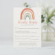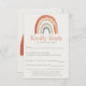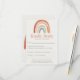 Esta charmosa placa RSVP apresenta um arco-íris desenhado à mão em terracota suave, pêssego, bege e sábio, aliado a tipografia quente e limpa. O layout minimalista e sem organização traz cor suave e personalidade alegre, perfeitamente adequado a um chá de fraldas de inspiração de vintage ou boho neutro de gênero. Fácil de preencher e visualmente delicioso, este cartão ajuda os hóspedes a responderem com estilo, ao mesmo tempo que adiciona elegância divertida ao seu evento.