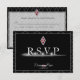 RSVP com emblema de rubi de diamante e símbolo de nó de amor destacando nome e data do casal.