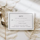 A placa RSVP elegante e simples em preto-e-branco-chic apresenta uma borda geométrica que enquadra sua data RSVP desejada e aceita e declina textos em caracteres clássicos. Adicione suas opções de entrada ou opções de refeição abaixo para permitir que os convidados indiquem sua preferência antes do tempo. Projetado para coordenar com nossa coleção de convites para casamento de Eterno.