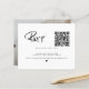 Menos incômodo, nenhum e-mail perdido quando você convida seus convidados para RSVP on-line com seu código QR que os envia diretamente para o seu site de casamento. O design apresenta um criativo simples, preto e branco minimalista com um roteiro RSVP de caligrafia moderno e elegante. Siga facilmente as instruções para inserir o URL do seu site de casamento no exemplo de código QR acima. É tudo o que há para isso.