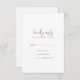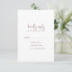 Este simples cartão RSVP de guião rosa rústico é perfeito para um casamento country. O simples e moderno design de cor-de-rosa e branco-rosa, roxo-branco, apresenta uma letra de caligrafia manuscrita caprichosa única, com um estilo de boho minimalista contemporâneo. Personalizável em qualquer cor. Mantenha o design mínimo e simplista, como está, ou personalize-o adicionando seus próprios gráficos e trabalhos de arte.
