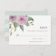 A Elegante placa RSVP floral em tons sujos de violeta roxo e verde-sábio apresenta uma caixa floral de aquarela no canto superior esquerdo, com a data de RSVP desejada, aceite e recuse a redação em letras clássicas fora do preto.