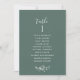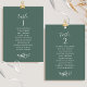 Ajude seus convidados a encontrar sua mesa com esses elegantes cartões de lugar de mesa verde com nomes de convidados. Cartões duplos para que os hóspedes possam procurar os seus nomes, tanto na frente como no verso. Espaço livre ao redor, dando-lhe a liberdade de usar clipes ou furos de socos para exibições suspensas, ou usar um mesa/quadro. O design tem um fundo verde profundo, texto branco, delicado detalhe floral desenhado à mão em branco e detalhes caligráficos manuscritos. Várias opções de cores. Ter todos os números de tabela na mesma cor ou cores misturadas de acordo com o tema de cor do evento. Parte de uma coleção com uma variedade de produtos de coordenação disponíveis, incluindo cartões de números de tabela e menus.