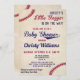 Use os nossos convites para chuveiros de beisebol antigos para convidar seus convidados para seu chá de fraldas temático de beisebol. Os fios de baseball vermelho clássicos estão sobre um fundo antigo e as fontes estão em azul e vermelho marinho. Não se esqueça de procurar por nossos informadores coordenadores e outros suprimentos de chá de fraldas temidos com beisebol.