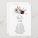Estes cartões de assentos de mesa de romance floral são perfeitos para um casamento elegante. A moderna design do bico rústico apresenta flores românticas a aquarela em tons macios de burgundy, mauve, rosa-pincel e branco-creme com folhas verdes. A placa impressão na frente e atrás (lado duplo).