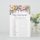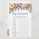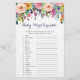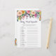 Nossos cartões coloridos de chá de fraldas de flores com fundo branco têm 20 palavras embaralhadas e todas as palavras estão associadas a bebês. Você pode fazer os convidados jogarem casualmente este jogo (apenas edite as direções você mesmo rapidamente) ou pode fazer dele uma competição dando aos convidados um certo tempo para completar o jogo e dar um prêmio a quem terminar primeiro. RESPOSTAS: 1)fraldas 2)chá de fraldas 3)toalhetes 4)bernário 5)cobertor 6)batalhão 7)traje 8)haste 9)atividade mat 10)teada 11)bassinet 12)garrafa 13)rattle 14)roda 15)móvel 16)loção 17)loção 18)pijante as 19)shampoo 20)bouncer