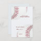 Tema de beisebol, foto de close-up, com modelos para os nomes de seus hóspedes, um número de mesa, e escolha de refeição na frente, e nomes de noiva e noiva e data de casamento na parte de trás. Nota: Este design está em uma placa FLAT que terá de ser dobrada manualmente. NÃO se dobra.
