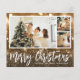 Pequenas cartões com fotos de férias em papel de 4,5" x 5,6" semibrilho de 110 lb. apresentam suas três fotos favoritas, seus nomes e o Feliz Natal em letra chic são impressos em um padrão de brilho de ouro e bronze. Certifique-se de verificar seu pedido duas vezes antes de adicioná-lo ao seu carrinho, pois o que você vê na tela é o que será impresso. O Serviço de Design ao Vivo pode ajudá-lo com seu layout de design, se necessário.