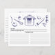 Cartão de receitas com ferramentas de cozinha, desenhado à mão, contendo um pino rolante, pote, moinho de pimenta e uísque com vegetais dispersos em azul. Sacudir o cartão de receita para o espaço.