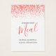 Uma refeição de casamento... um pequeno pacote de cartões de refeição de coral. Cartões de recepção de casamento são parte do conjunto de casamentos de noivas de castas de cascata coral coral. Ideal para uso dos convidados para indicar preferências de refeição antes de um evento de casamento ou jantar Texto personalizável na frente e no verso. Outros itens correspondentes disponíveis. Coral de arte original pintura moderna de abstrato e design por Sarah Trett para www.mylittleedenweddings.com no zazzle.