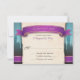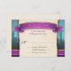 Cartões de resposta de RSVP de casamento de contadores justos, projetados com um banner roxo e dourado e as palavras "O favor de uma resposta...", castelos à distância sobre um gradiente azul para castanho, e seus detalhes de RSVP de casamento sobre uma ilustração de textura de papel de legenda bege velho e torrado. Essas placas de resposta RSVP foram projetadas para corresponder: