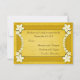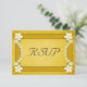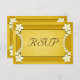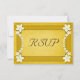 Dourado Floral Russo © Sunny Mars Designs. Cartões de resposta RSVP de casamento elegantes, personalizáveis e personalizáveis, com bordas amarelas de fita, flores brancas modernas e bonito no fundo antigo do papel de pergaminho.