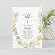 Ajude seus convidados a encontrar sua mesa com este elegante cartão moderno de assentos com nomes de convidados. Cartões duplos para que os hóspedes possam procurar os dois, frente ou verso pelos seus nomes. Espaço livre ao redor, dando-lhe a liberdade de usar clipes ou furos de perfuração para monitores suspensos, ou usar o suporte/quadro da mesa. Elementos de caligrafia escritos à mão modernos e belos e delicados cordéis florais com flores em matizes amarelas e brancas. PARA ENCOMENDA: coloque e solicite individualmente cada mesa, preencha o cartão com nomes de convidado para a primeira mesa e adicione-o ao seu carrinho de compro. Volte e preencha com o segundo número da tabela e os nomes de convidados, adicione ao carrinho de compro e repita até que todas as suas mesas estejam concluídas e, em seguida, continue com o pagamento. Parte de uma coleção com uma variedade de produtos de coordenação disponíveis.