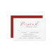 Essa placa de gabinete de resposta minimalista oferece espaço para os convidados adicionarem suas informações de resposta e uma simples escolha de refeição. A carta se inverte para o vermelho de baga complementar. Uma escolha simples mas elegante para casamentos. Para ver a papelaria de casamento correspondente visite www.zazzle.com/dotellabelle